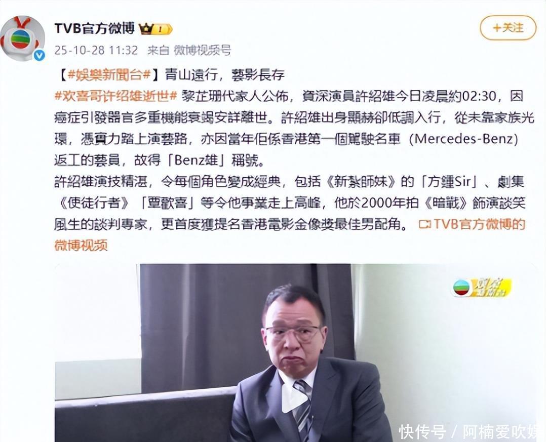 2025日凌晨,一个让很多港剧迷,难过的消息传来,77岁的许绍雄走了。他是被观众喊了好多年的“欢喜哥”,也是圈内人熟知的“Benz哥”,这次是因为癌症引发多器官衰竭,走的时候身边有家人和好朋友陪着,也算安详。消息一出来,整个华语娱乐圈都动了。周润发、苗侨伟、佘诗曼这些大家熟悉的艺人,连夜就往医院赶去送别;社交平台上,许绍雄一路走好、欢喜哥再见直接冲上热搜第一,底下全是剧迷晒的剧照,有人说“小时候看他的戏长大,现在他怎么就谢幕了”。